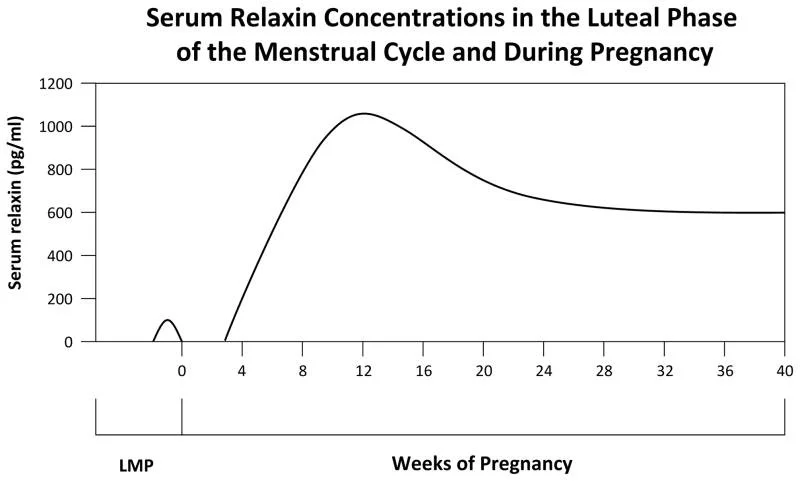 There is a lot of misconception that relaxin only affects pregnant individuals in their third trimester, But based on a study that looked at relaxin levels during the 40 weeks of pregnancy, they found that relaxin levels are highest at 12 weeks, then taper off and gradually rise again through the remainder of pregnancy.